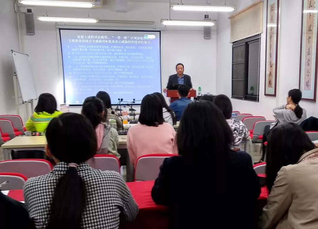 魏老师首先从十九大报告精神与国际政治专业知识相结合的角度为同学们阐述了此次授课的意义。他讲到,在党的十九大报告中,习近平总书记提出要统筹传统安全与非传统安全作为新时代中国特色社会主义思想的重要内容之一,非传统安全研究已经成为了党和国家重点关注的领域,而“一带一路”倡议是近年来中国重点推行的对外方略,因此对于国政专业的学生来说,了解与认知“一带一路”倡议与非传统安全的关系具有重要意义。